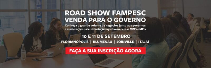 Com um total de mais de 200 participantes, o Road Show Fampesc – Venda para Governo foi um sucesso. Realizado segunda e terça-feira, em Florianópolis, Blumenau, Joinville