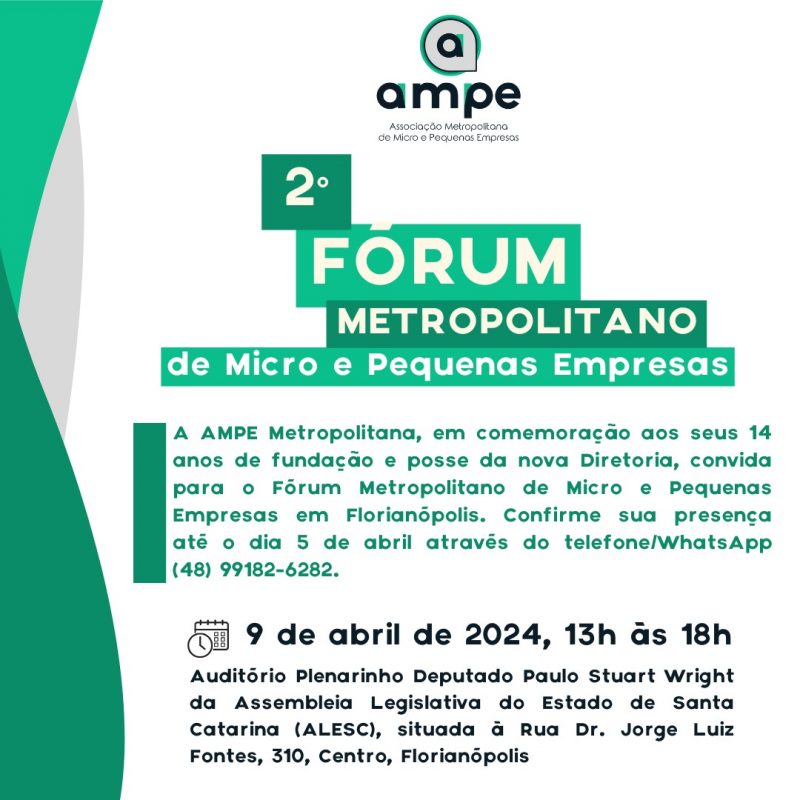 Ampe comemora 14 anos com a realização do 2º Fórum Metropolitano de Micro e Pequenas Empresas O 2º Fórum Metropolitano de Micro e Pequenas Empresas